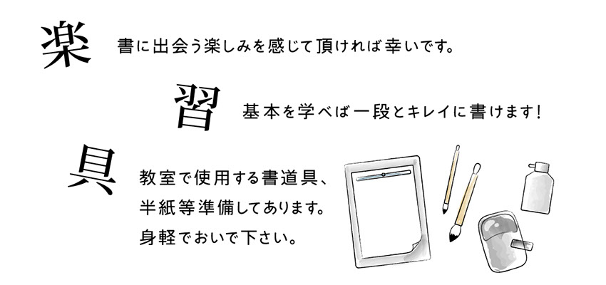 毛筆部と硬筆部があります。ご希望により習うことができます。