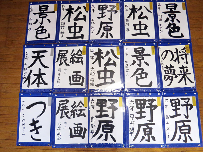平成26年10月 小平市書道展 当教室の生徒 上位賞の作品