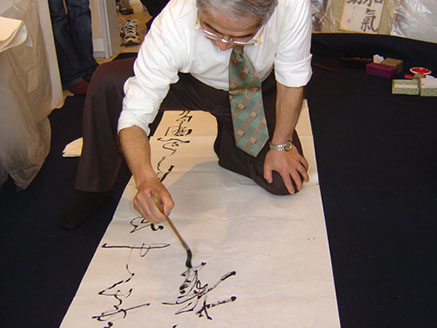 小平市政50周年記念「毛筆で書く文化承継」で揮毫する